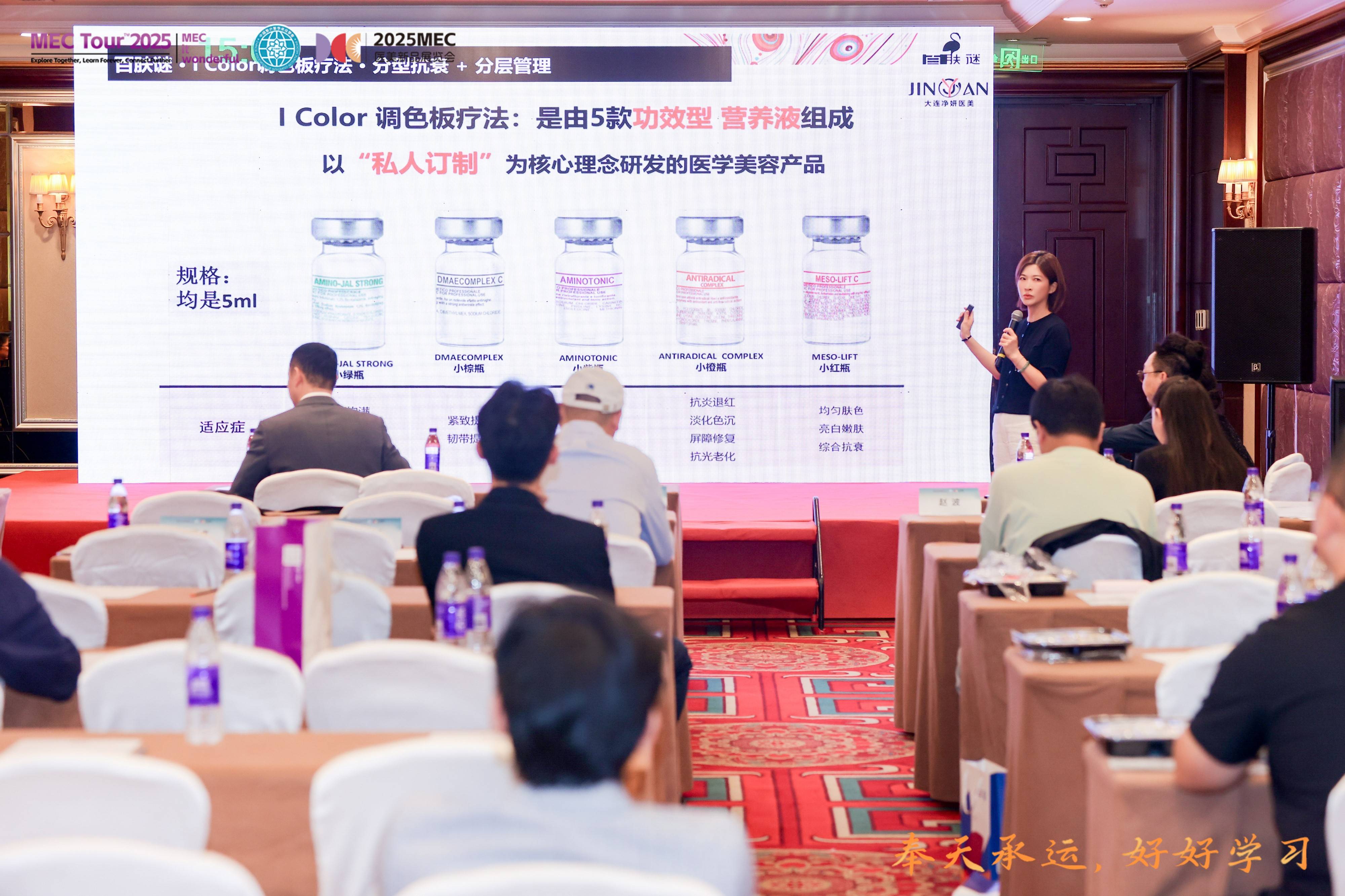 分享会上,刘冰院长围绕“光电仪器联合百肤谜方案”展开深入而专业的讲解。她强调,百肤谜红颜针中采用的修复类成分“几丁糖”,具有非常明显的抗炎抑菌作用,能够有效抑制炎症因子释放,减轻炎症反应,为肌体恢复健康状态营造良好环境。而百肤谜I Color系列小魔瓶产品则针对不同的肌肤问题,从多个角度进行干预,使用者可以根据个体差异自由混合调配,实现精准、高效的解决肌肤问题。